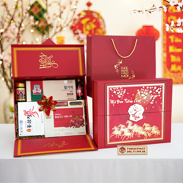 Xuân 2026, Thịnh Phát trình làng các mẫu hộp quà Tết sang trọng, ý nghĩa với thiết kế hiện đại, bắt kịp xu hướng. Tùy theo sở thích hay nhu cầu biếu tặng mà quý khách có thể yêu cầu nhân viên lựa chọn cho riêng mình một set quà tặng theo ý muốn.