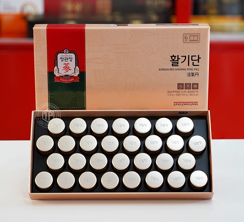 Hồng sâm Vital Pills được chế tạo dưới dạng viên từ bột chiết xuất từ hồng sâm 6 năm tuổi kết hợp đương quy, sơn thù du, lộc nhung... sau đó phủ bột hồng sâm làm gia tăng hương vị. Viên Hồng Sâm KGC Vital Pill (Hwal Gi Dan) tăng cường sinh lực, hương vị truyền thống. Đóng gói từng viên dễ sử dụng