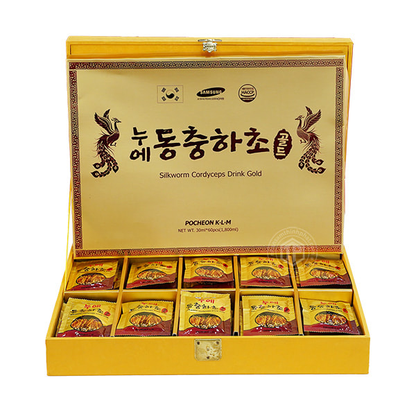 - Nước đông trùng hạ thảo Hàn Quốc hộp vàng 60 gói thương hiệu KangHwa được làm từ đông trùng hạ thảo nuôi cấy, cung cấp hàm lượng dinh dưỡng dồi dào, giúp nâng cao sức khỏe.