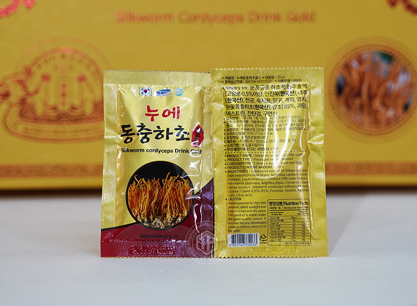 Nước đông trùng hạ thảo Hàn Quốc Pocheon hộp 60 gói, là thức uống bổ sung có tác dụng tích cực trong việc hỗ trợ nhiều vấn đề sức khỏe, mang lại lợi ích người cao tuổi, người mắc chứng khó ngủ, người bệnh hen suyễn.