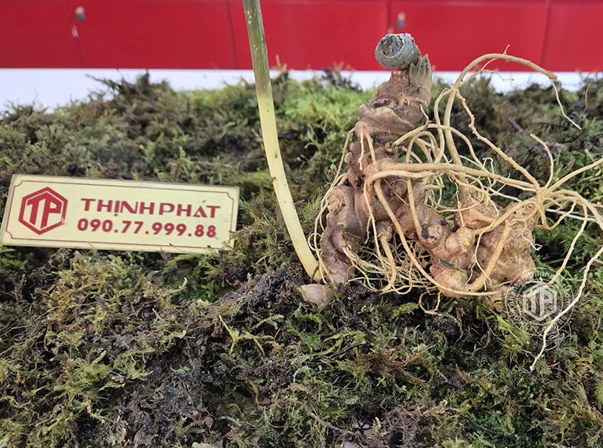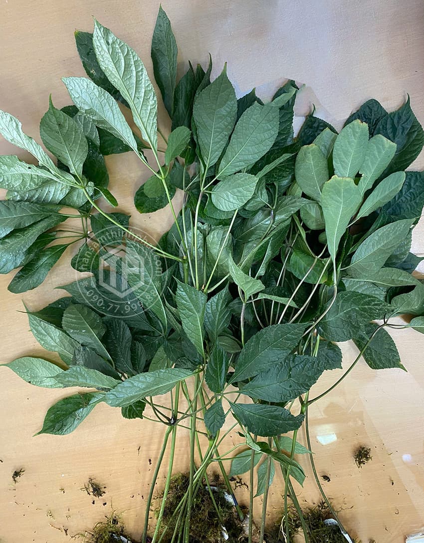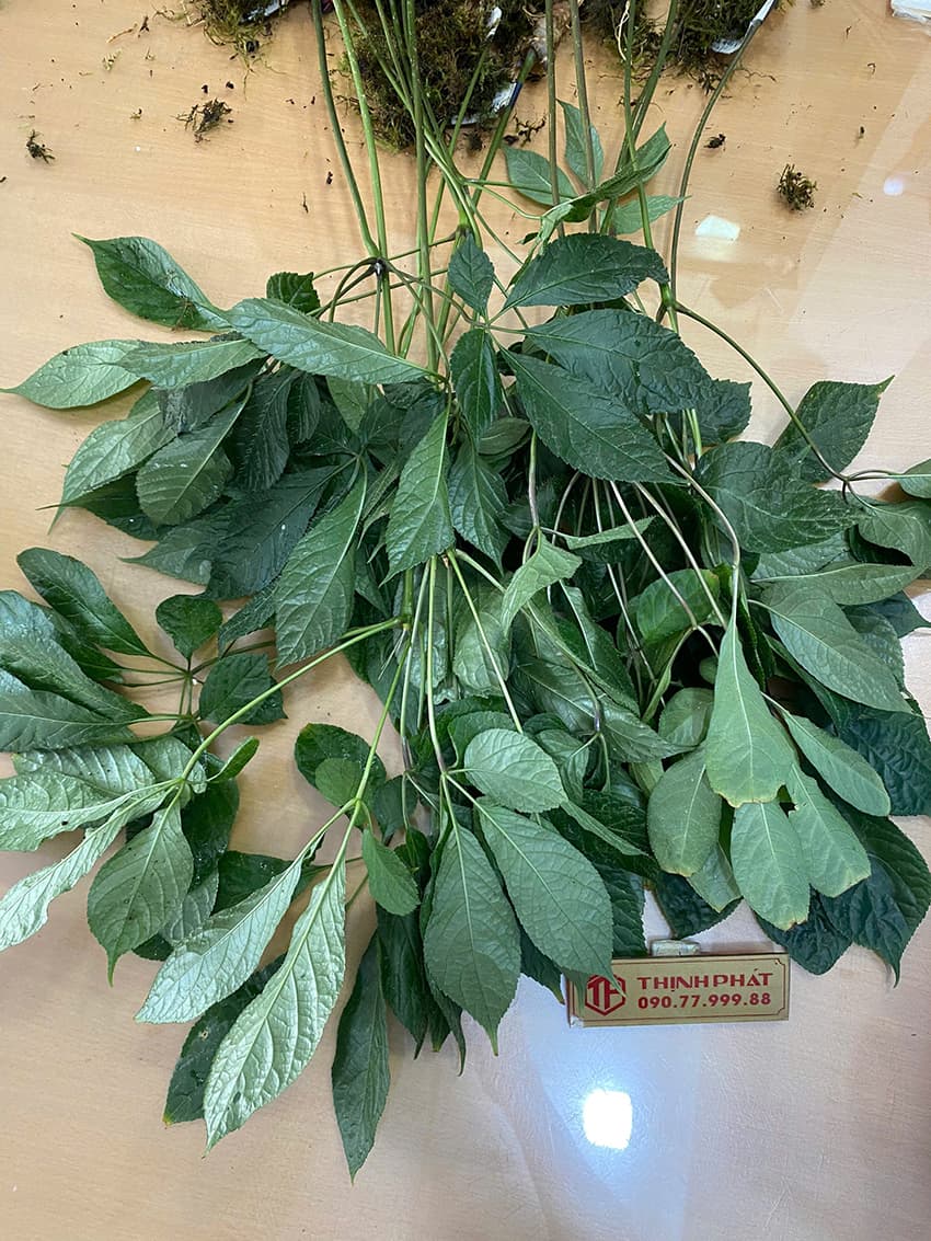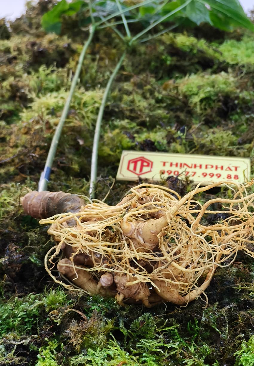 ➢ Sâm Ngọc Linh là loại cây thảo cao 80 – 100cm, thân rễ nằm ngang trên hoặc dưới mặt đất khoảng 1 – 3cm, mang rễ con và củ. Thân rễ có sẹo, nhiều đốt. Các thân mang lá; tương ứng với một thân mang lá là một đốt dài khoảng 0,5 – 0,7cm. Trên đỉnh của thân mang các lá mọc vòng, có 5 – 7 lá chét với phiến lá hình trứng ngược. Hoa mọc giữa các lá thẳng với thân. Quả dài từ 0,8 – 1,0cm, rộng khoảng 0,5 – 0,6cm, có màu đỏ khi chín. Cây mọc dưới tán rừng. Bộ phận dùng làm thuốc chủ yếu là thân, rễ củ. Cũng có thể sử dụng cả lá và rễ con. Nói chung phải chọn loại sâm có từ 7 – 8 tuổi mới sử dụng tốt. Người ta dựa vào sẹo trên thân rễ để tính tuổi của sâm; sâm trên thân rễ có trên 10 sẹo ước tính là trên 8 năm tuổi.